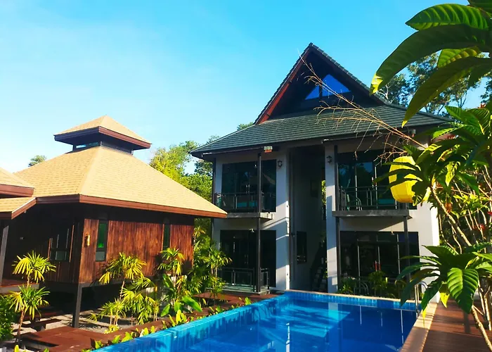 O hotel Baan Koh Kwang Pool Villa Krabi town inclui 6 quartos e está a 3.5 km da Praia de Tubkaek. Este hotel também inclui o parque de estacionamento.
